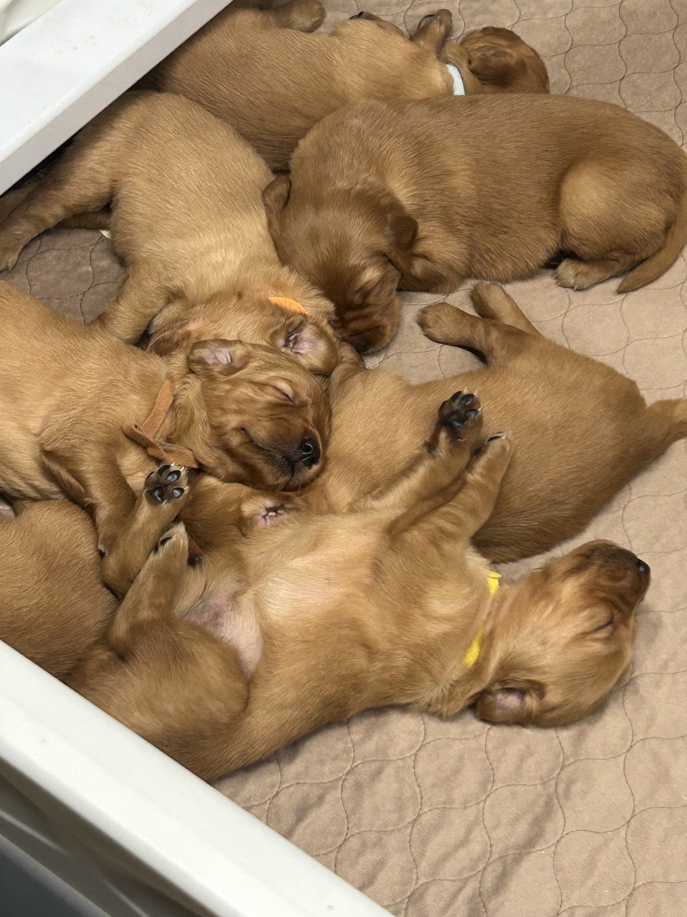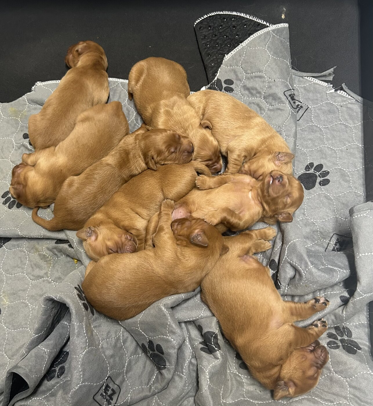 These little butterballs are growing! Posted on September 23, 2025 We are so excited about these pups, check them out! We have a reservation list started, call or submit your application to get on it today! We have been utilizing the super dog program with these little guys!